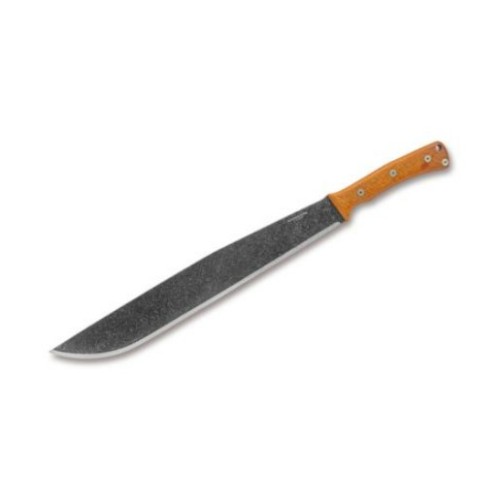 Unterholz und Gestrüpp stehen auf der Speisekarte der Condor Mountain Pass Machete ganz oben. Die eindrucksvolle Klinge aus klassischem 1075 ist teilweise mit einem dunklen Stonewash-Finish versehen und bietet auch den widerspenstigen Schneidarbeiten in der Wildnis selbstbewusst die Stirn. Der Griff aus strukturiertem Micarta liegt sicher in der Hand und ist mit einer praktischen Fangriemenöse ausgestattet. Lieferung mit hochwertiger Lederscheide.